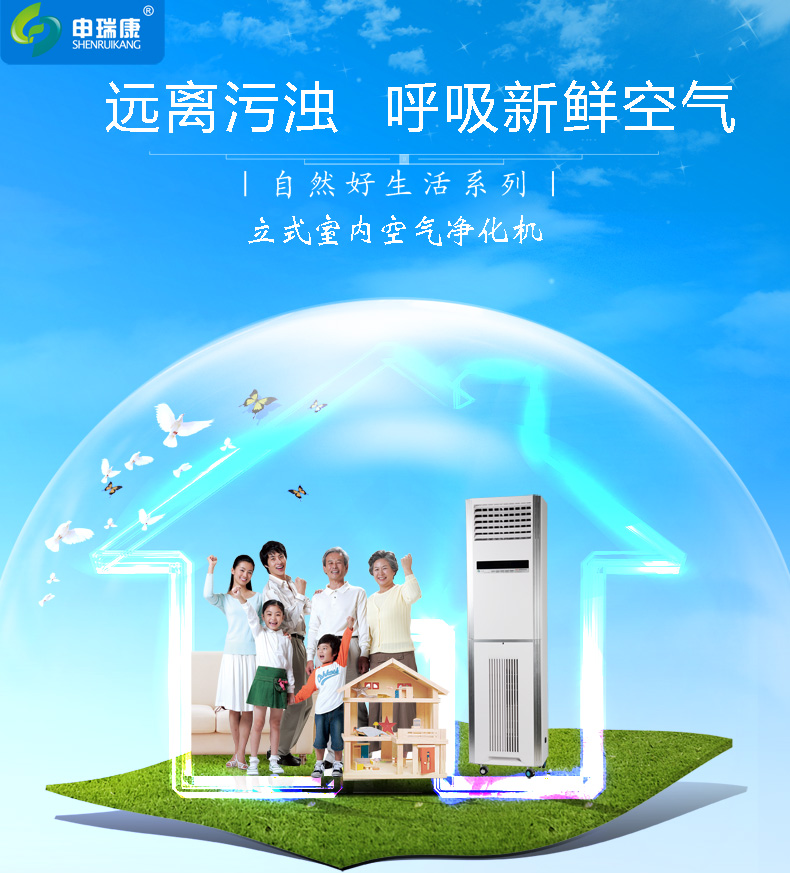 申瑞康落地式空氣凈化器由進(jìn)風(fēng)口、預(yù)過濾系統(tǒng)、高效過濾系統(tǒng)、風(fēng)機(jī)、二段式高壓靜電場、浸漬型活性炭網(wǎng)、負(fù)離子發(fā)生器等部件組成。預(yù)過濾系統(tǒng),首先對空氣中較粗的飄塵粉塵截流過濾,一般5-6微米左右的飄塵粉塵可通過預(yù)過濾系統(tǒng)完成。設(shè)立的二段式高壓靜電場,它具有最佳集塵效果和最大的集塵面積。當(dāng)污濁的空氣進(jìn)入電場極區(qū)時,靜電場立即對空氣中飄塵粉塵、細(xì)菌、氣溶膠等雜質(zhì)進(jìn)行極化,使其帶上電荷,帶電的污染物進(jìn)入高壓電場時被強(qiáng)烈的收集,被極化后的污染物被集塵區(qū)的極片有效吸集。最后還設(shè)置了浸漬性活性炭,用以吸附污濁氣體分子。 (1)電子集塵室除塵、滅菌凈化: